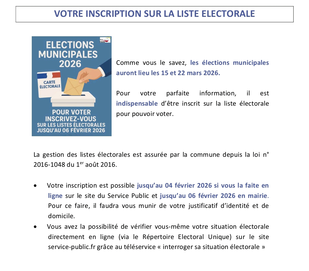 - INFOS : Retrouvez le compte-rendu du Conseil Municipal du 26 Septembre 2025 dans notre rubrique ''Délibérations'' ou ''Vie communale/Conseils municipaux"